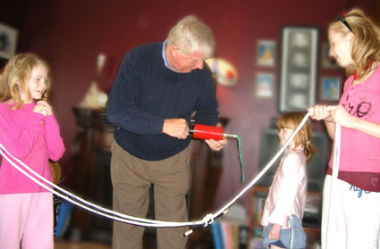 Your child is suspended in midair with no visible means of support. Only the 'magic words' keep him or her floating in the air!